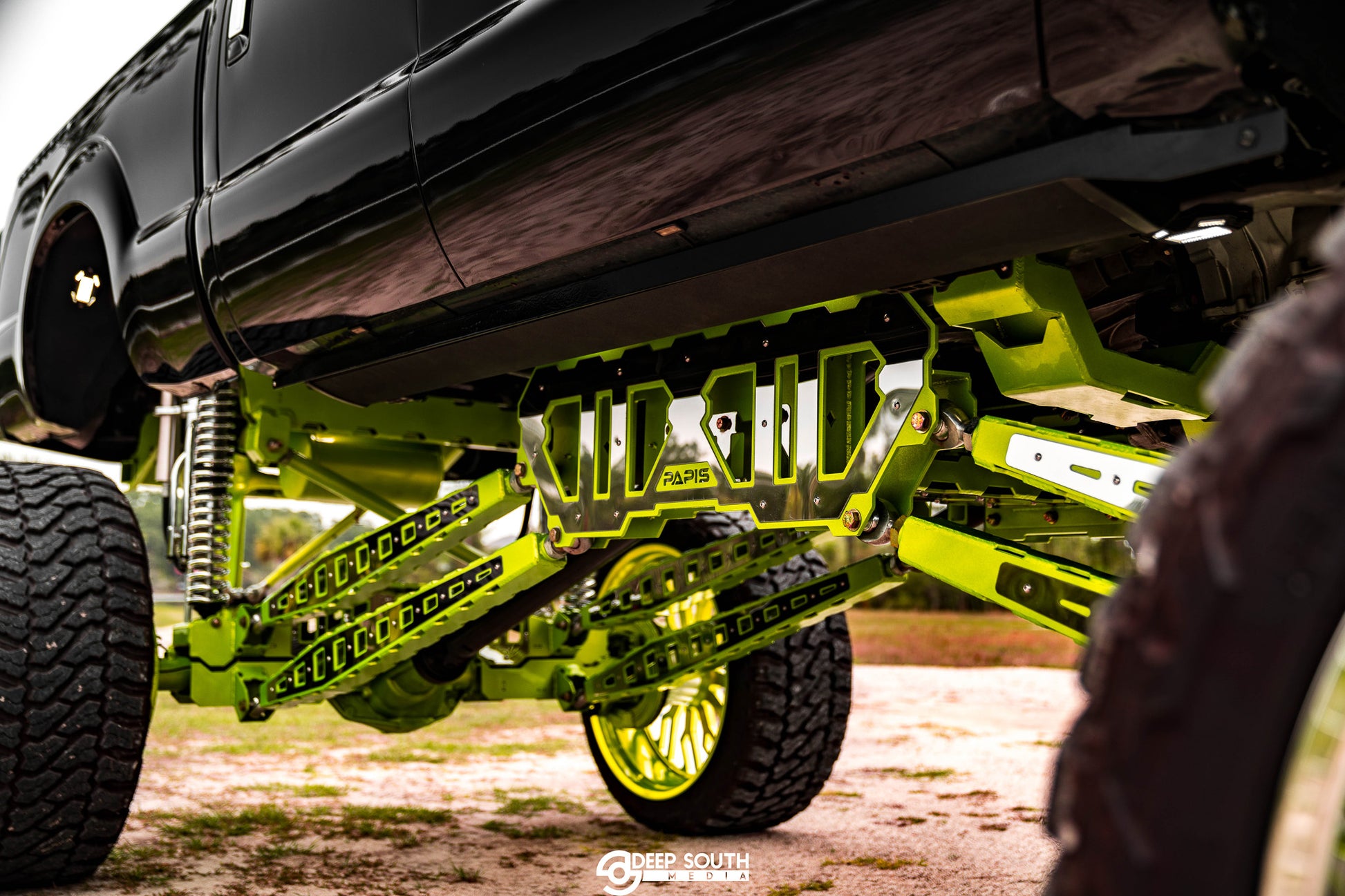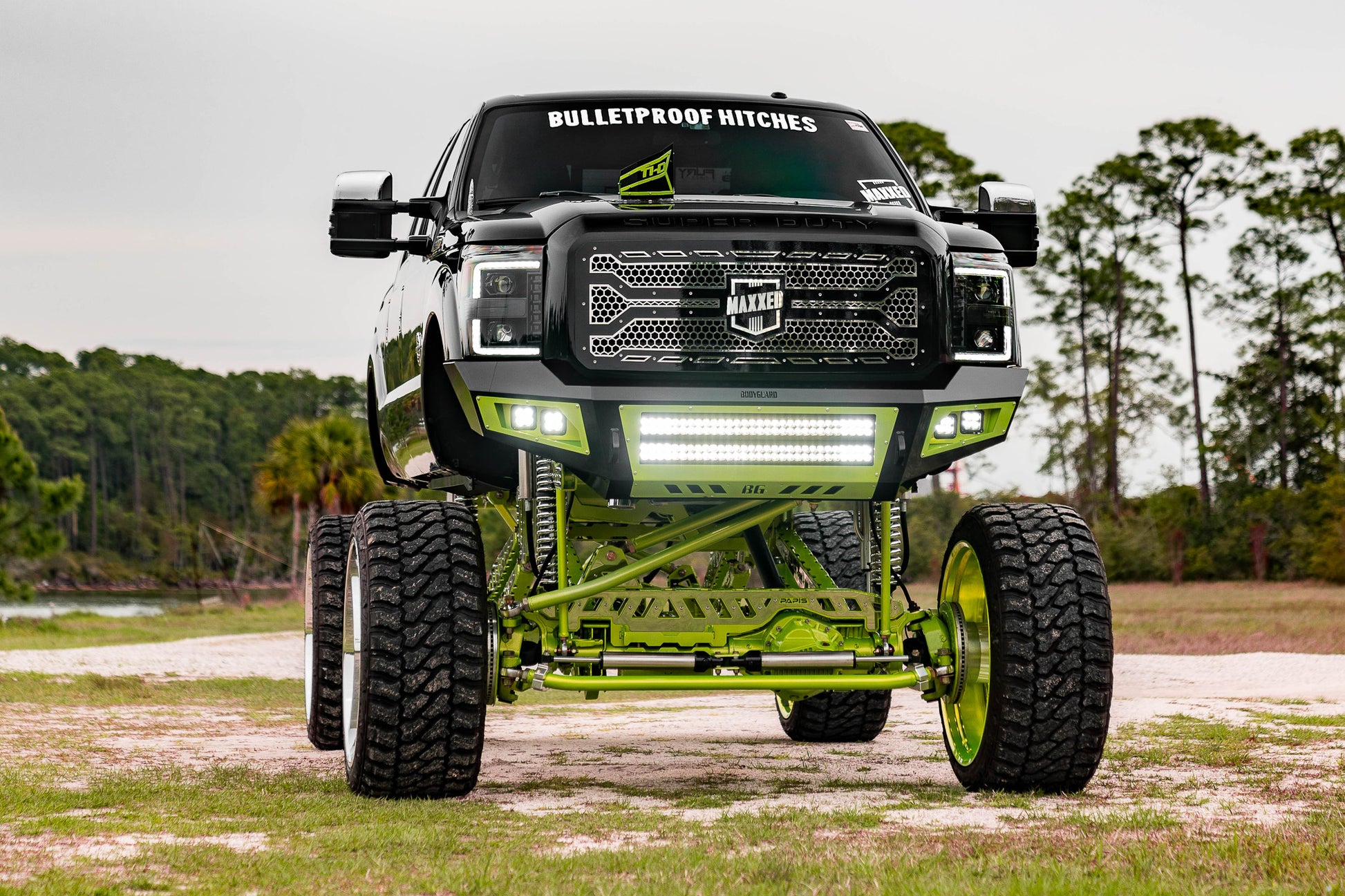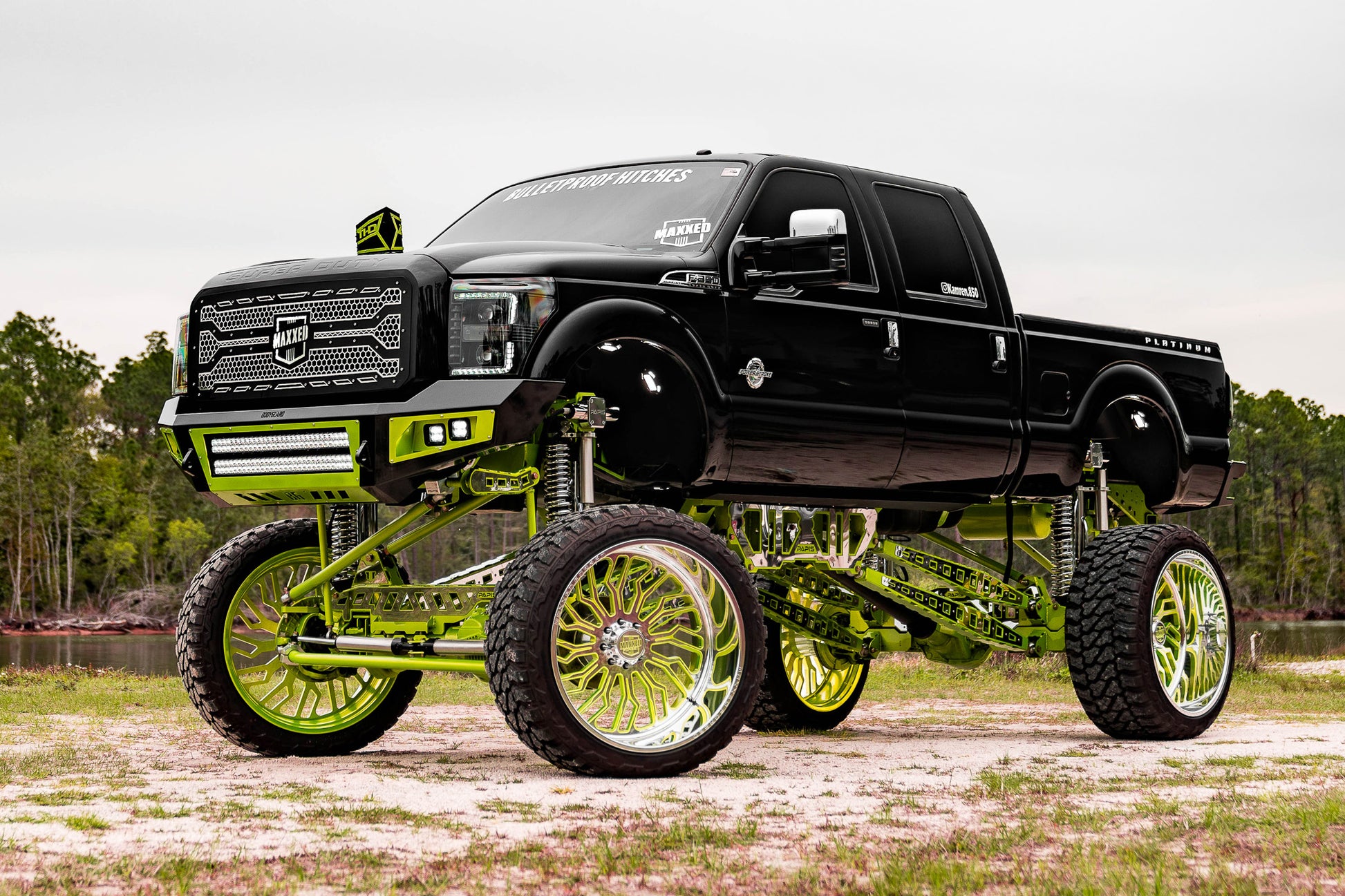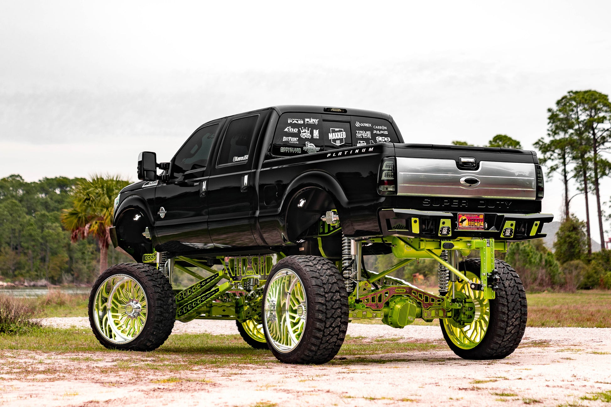 This 2016 F350 Super Duty is on our Papis 18-24 inch Long arm front and rear 4link lift kit with front and rear coil over conversions and front and rear super duty bolt on truss with full heim steering conversion