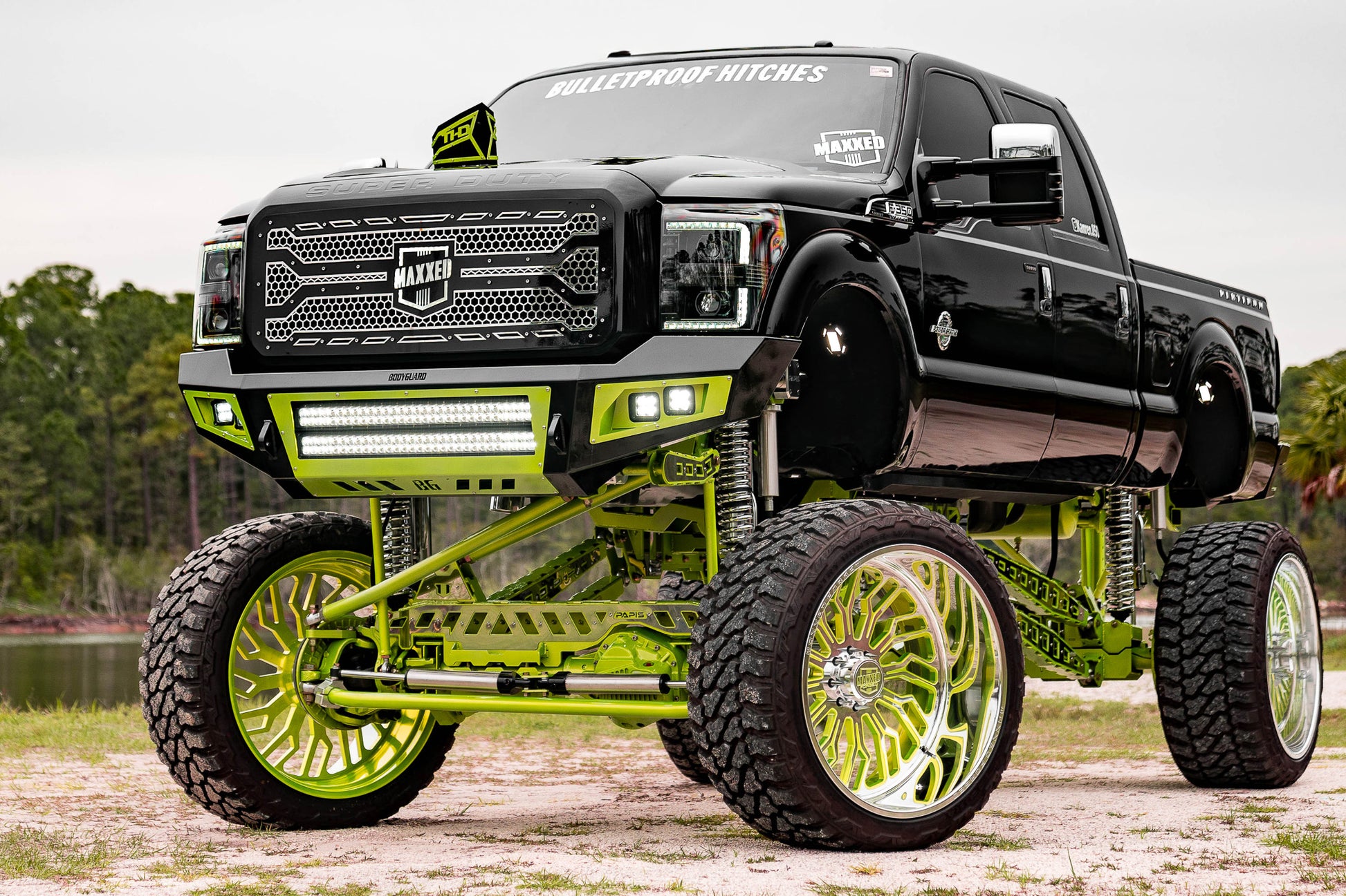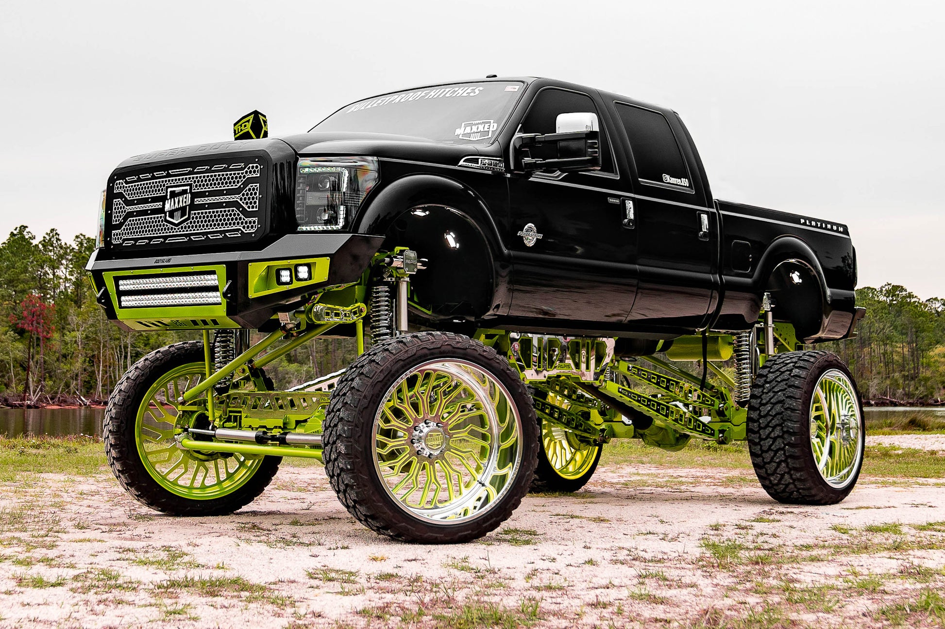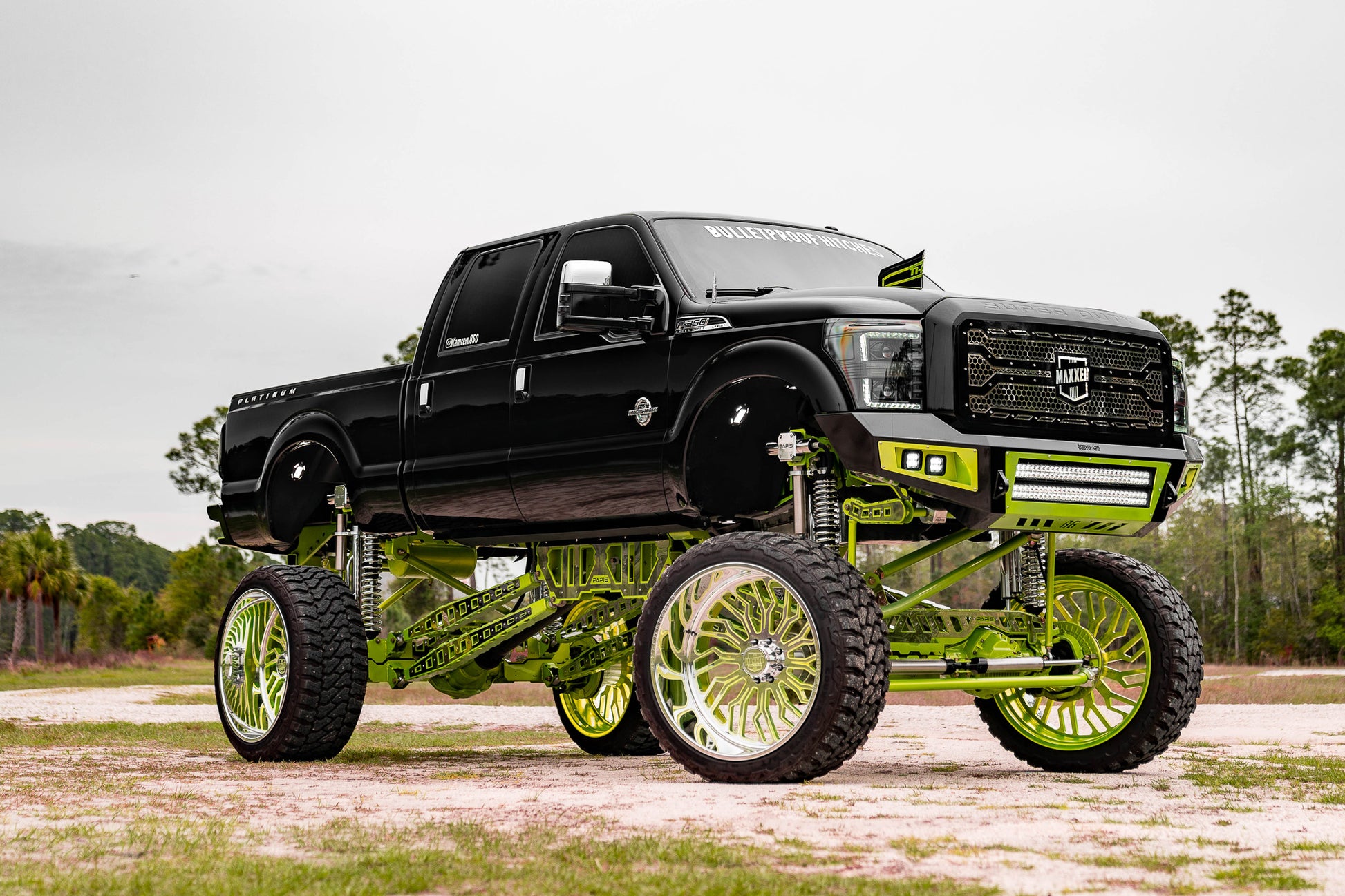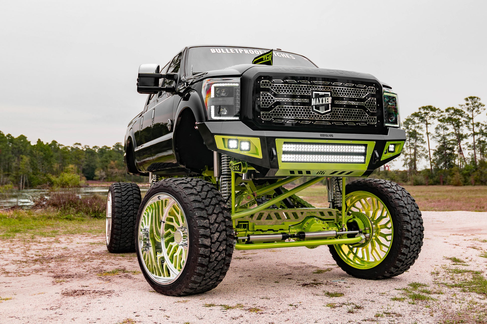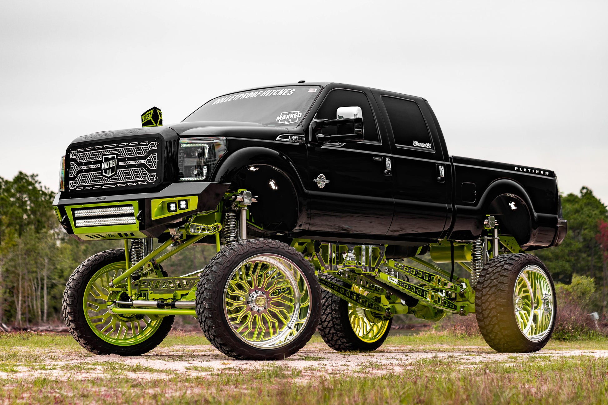 This 2016 F350 Super Duty is on our Papis 18-24 inch Long arm front and rear 4link lift kit with front and rear coil over conversions and front and rear super duty bolt on truss with full heim steering conversion