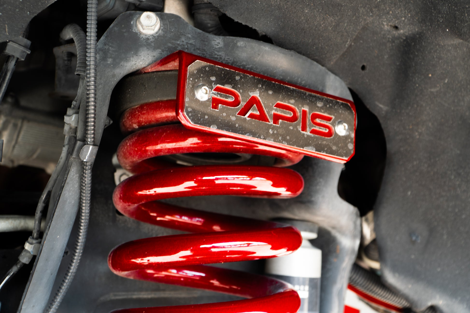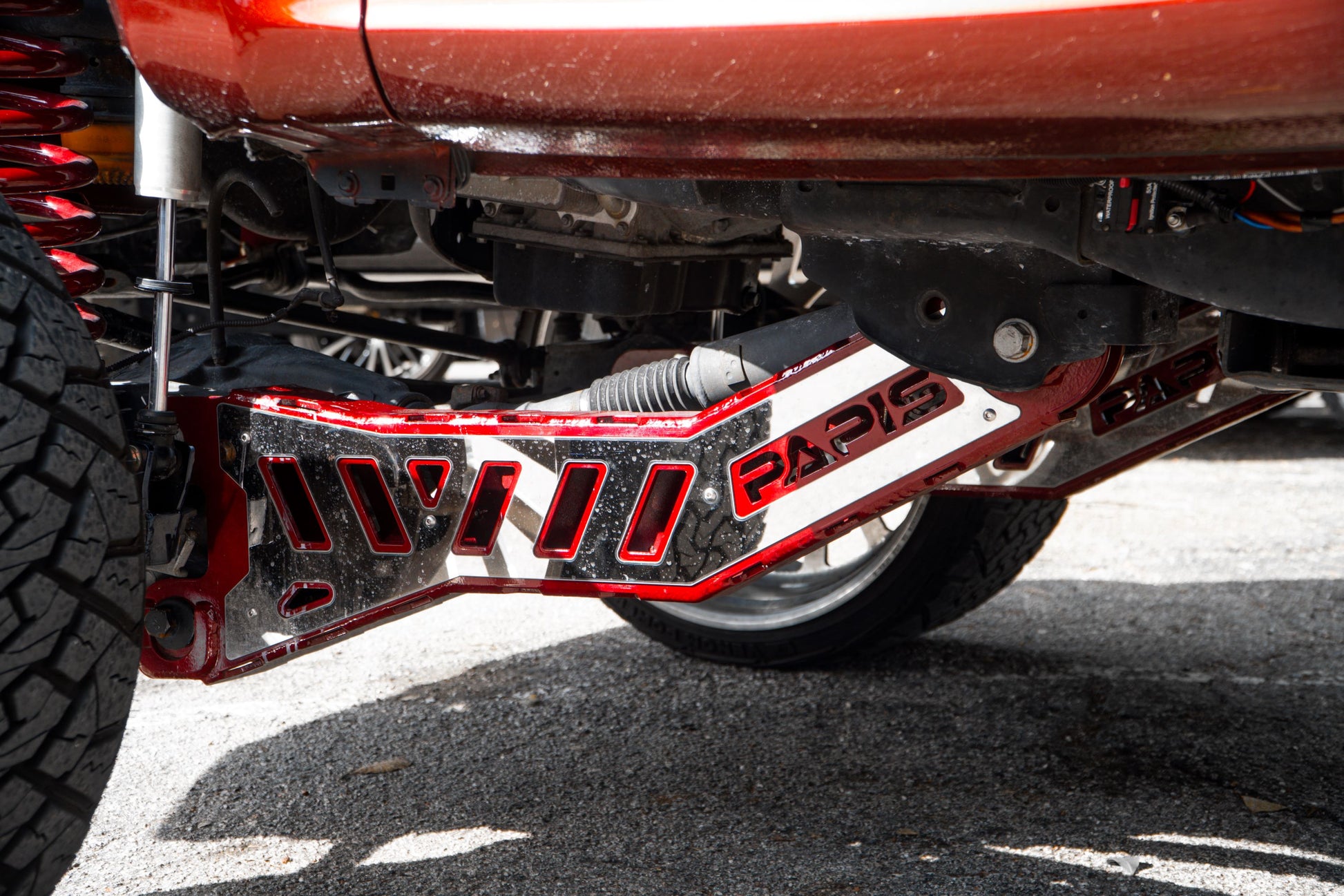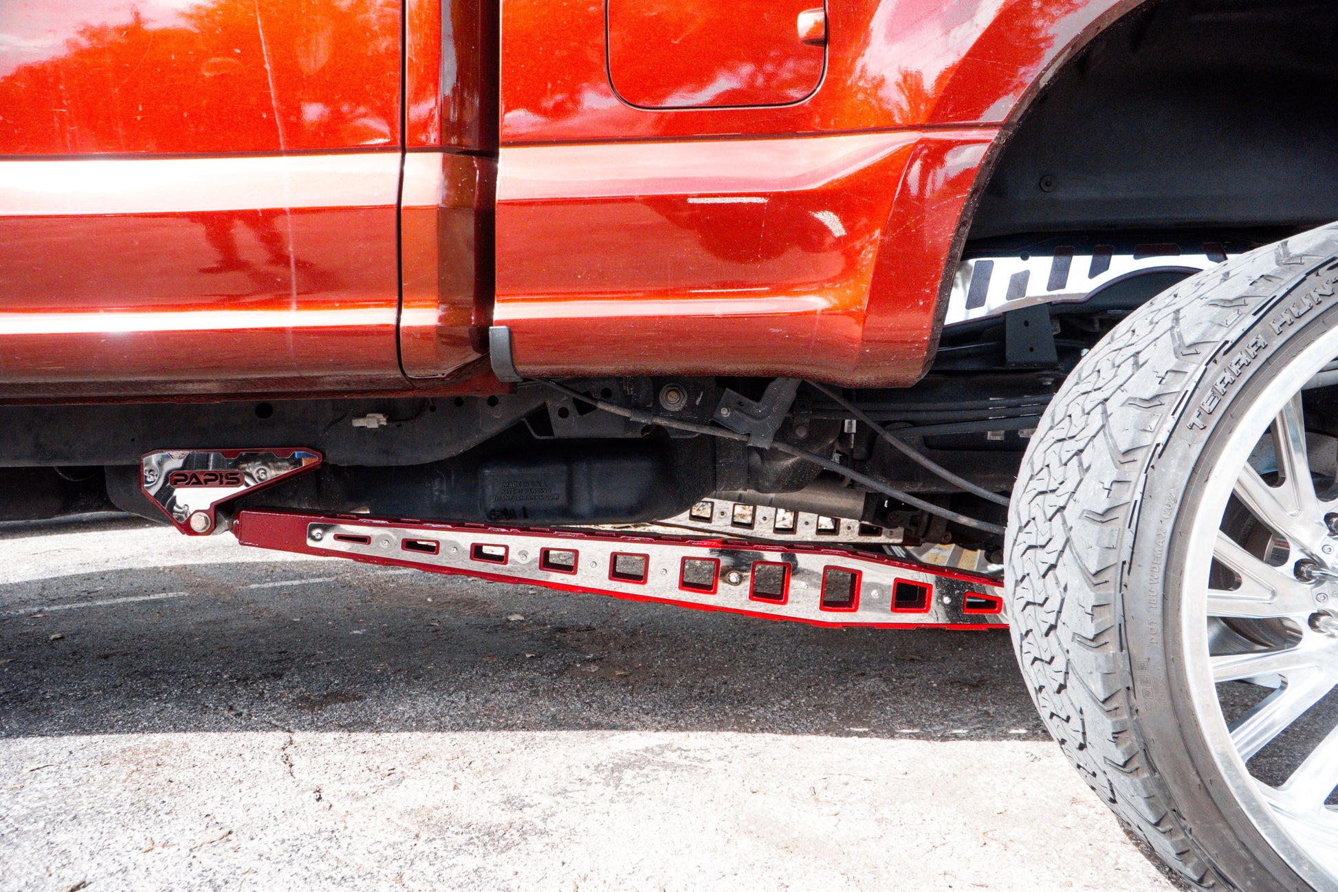 This 2017 F250 Super Duty is on our Papis 4.5-10 inch Papis Radius Arm lift kit with traction bars and a steering stabilizer bracket. This truck is using a set of 8 inch springs with our Papis Coil Plate top