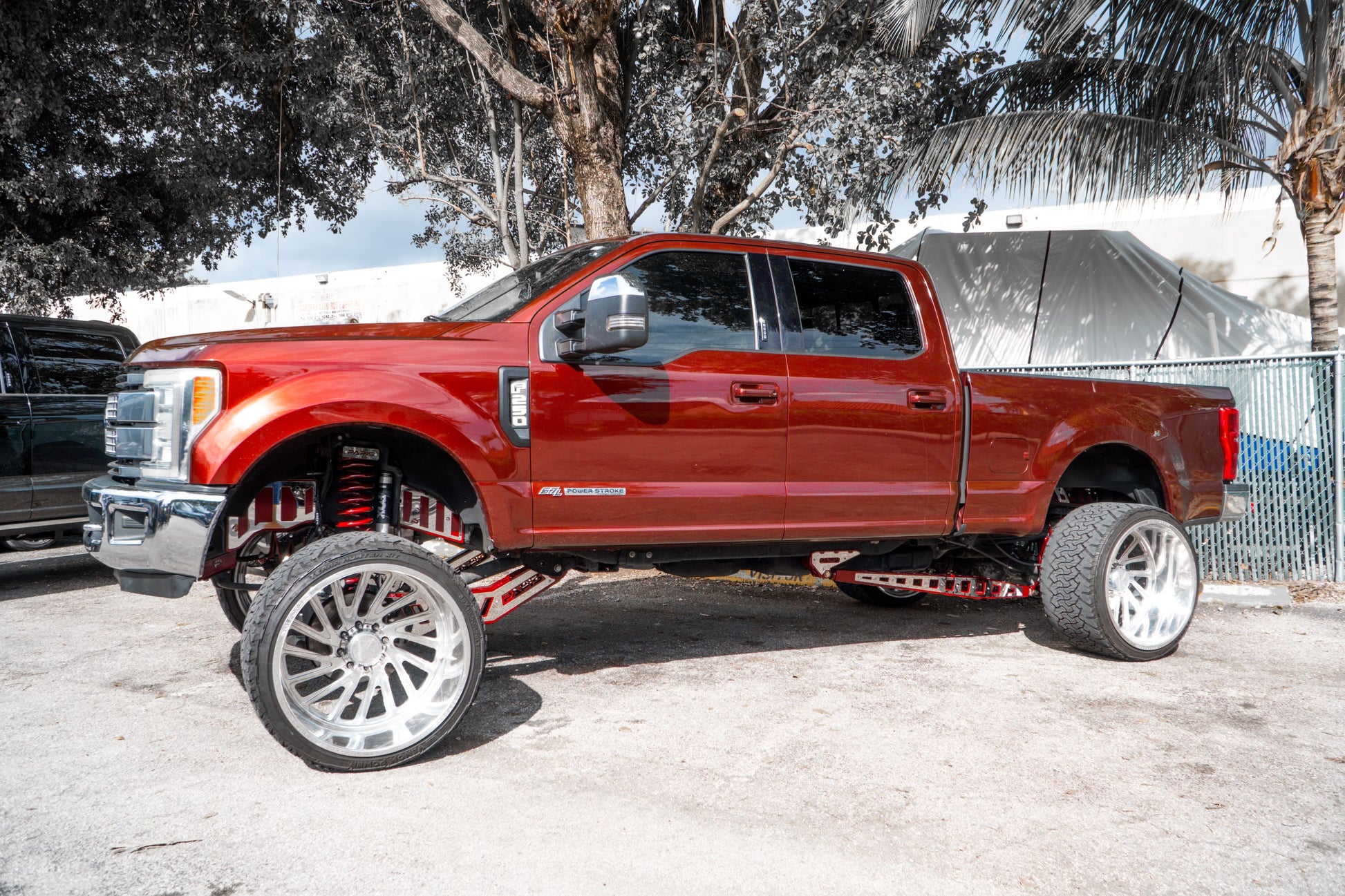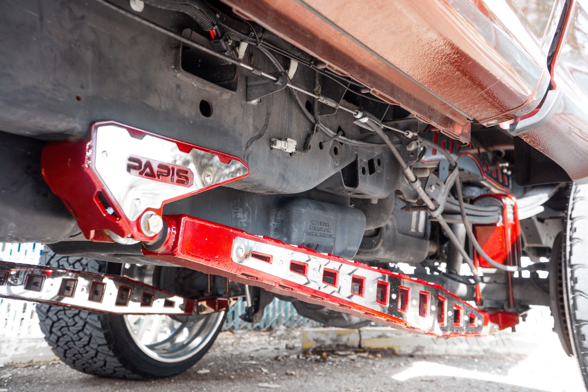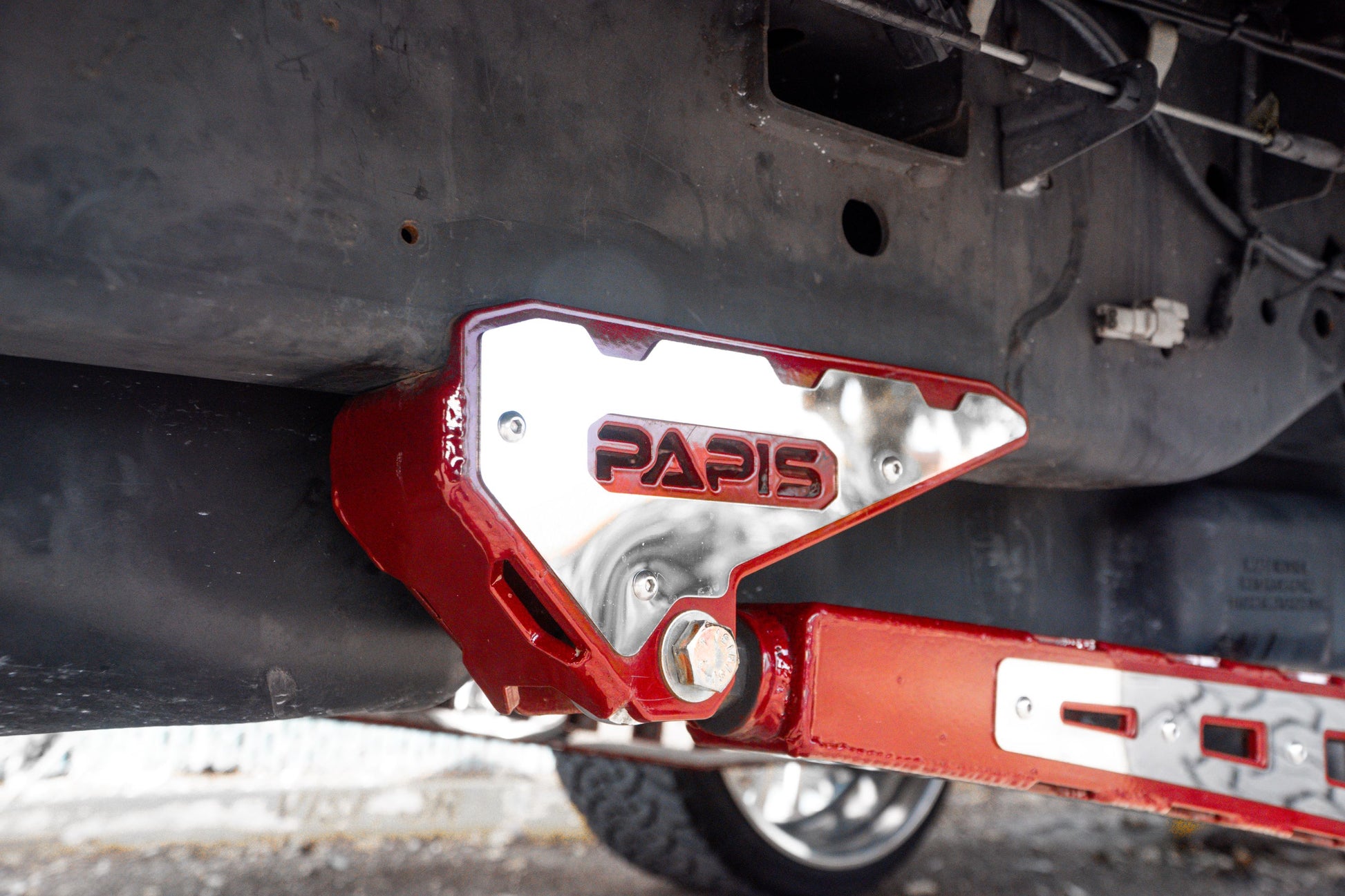 This 2017 F250 Super Duty is on our Papis 4.5-10 inch Papis Radius Arm lift kit with traction bars and a steering stabilizer bracket. This truck is using a set of 8 inch springs with our Papis Coil Plate top