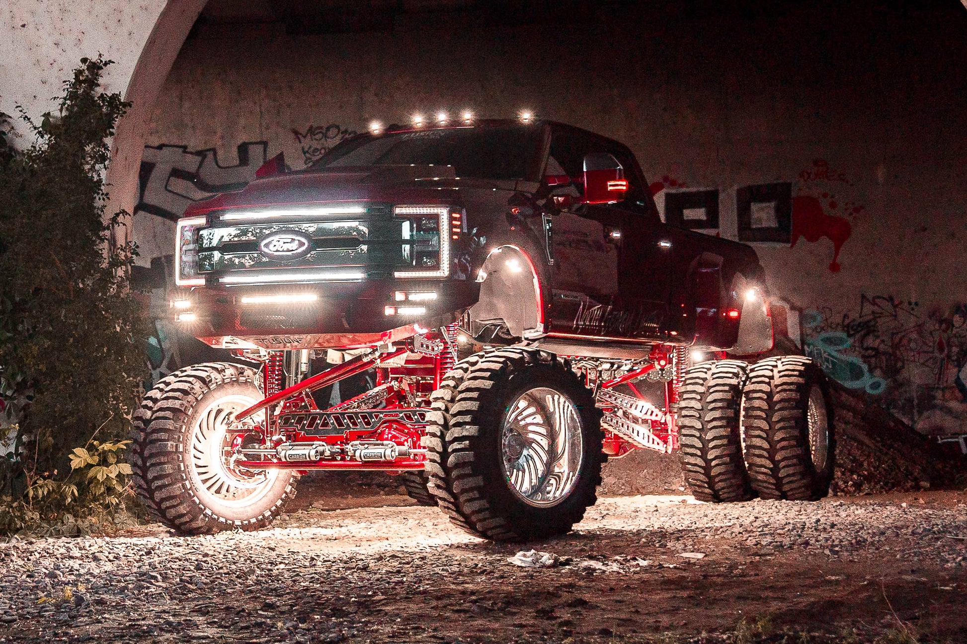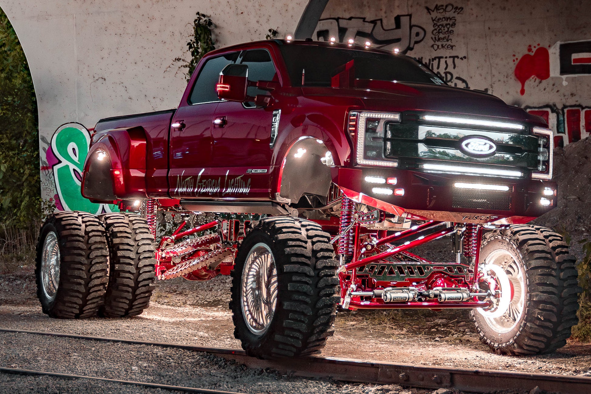 This 2024 F350 Super Duty is on our Papis 18-24 inch Long arm front and rear 4link lift kit with front and rear coil over conversions and front and rear super duty bolt on truss with full heim steering conversion