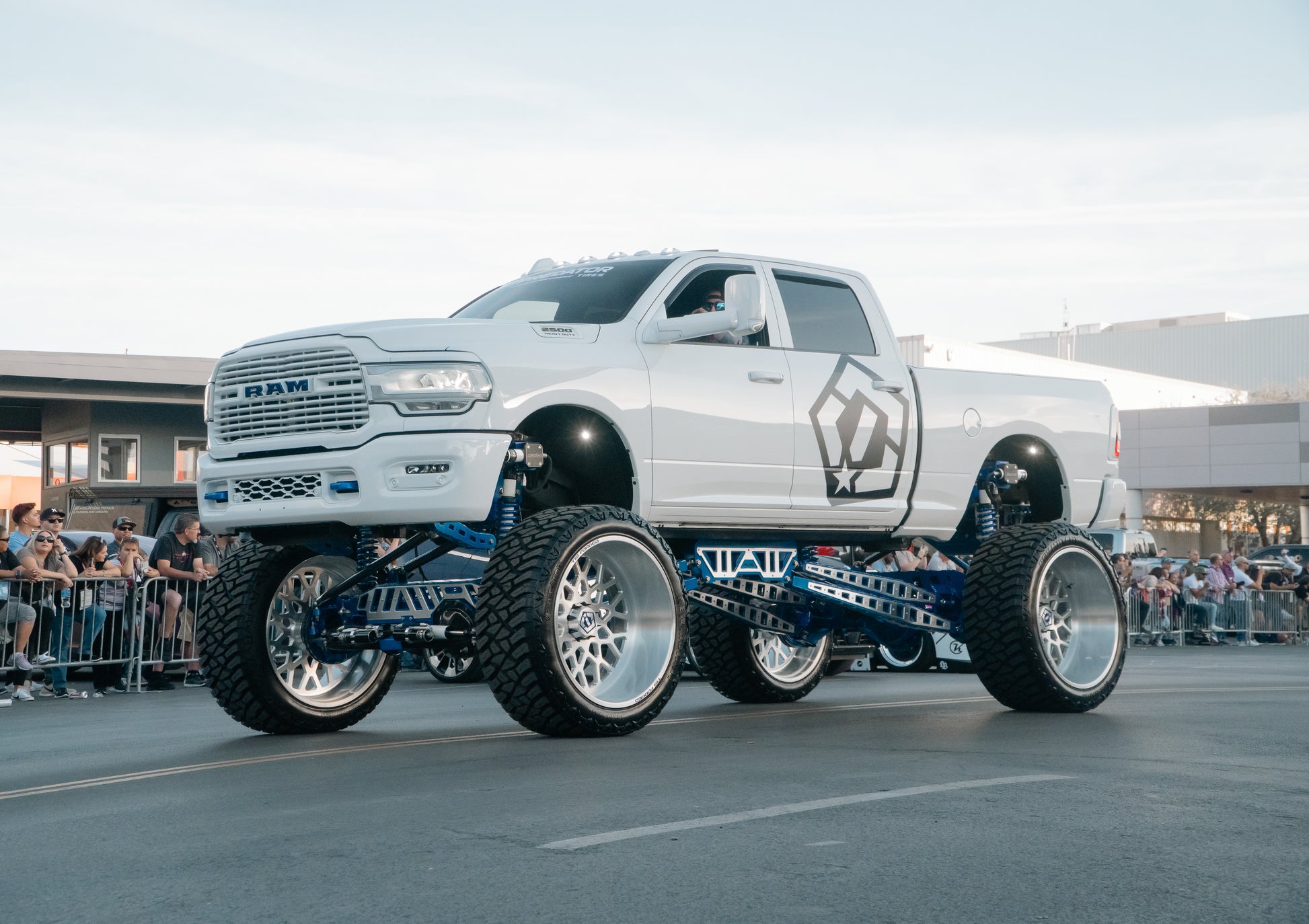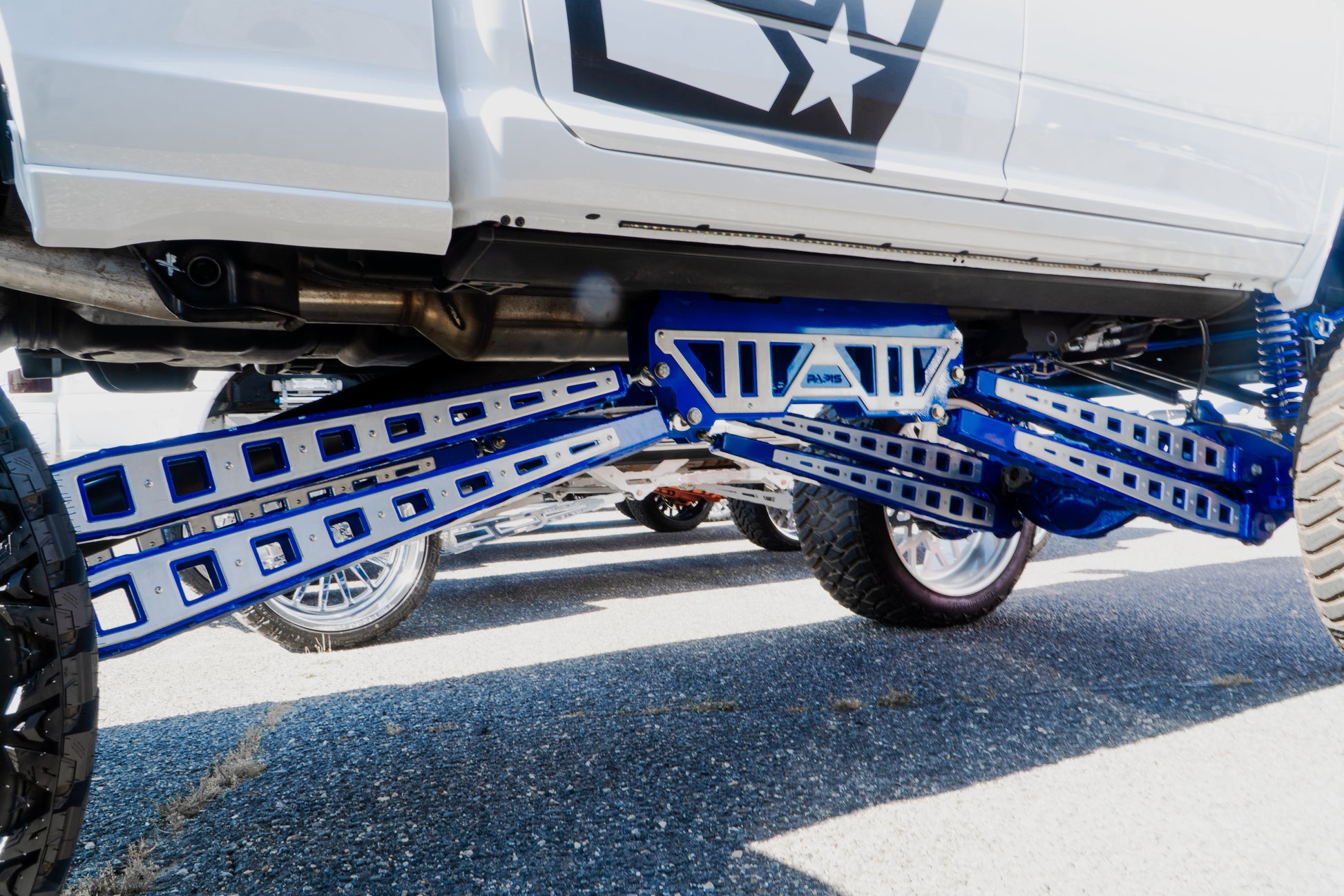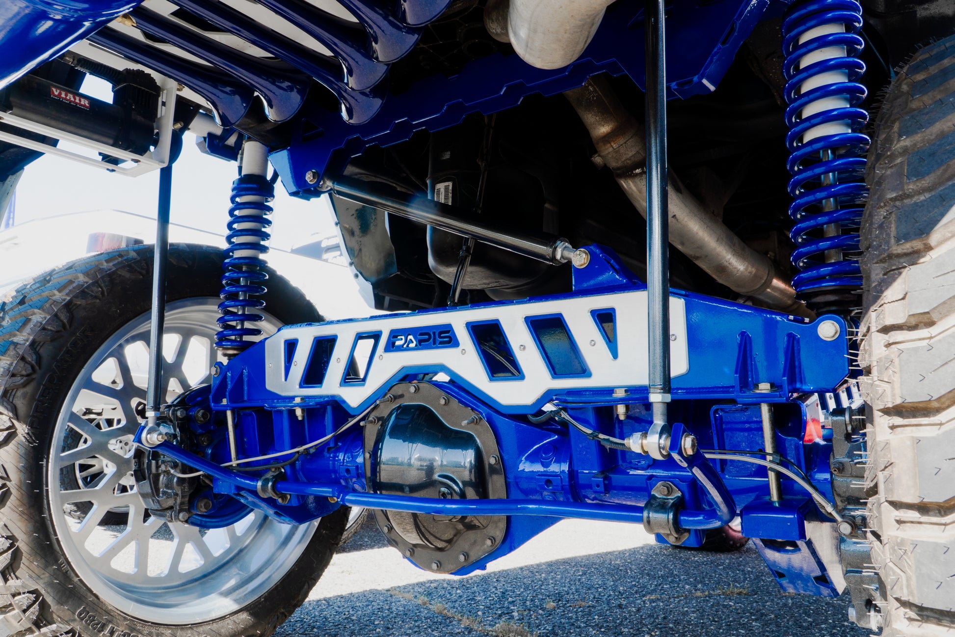 This 2022 Ram 2500 is on our Papis 10-18 inch Long Arm 4 link lift kit with rear 4 link and coil over conversion kit and a full High Steer Truss System. This truck is using a set of 16-18 inch Carbon Coil Overs and a rear 3 peice bracketry to run rear Coil Overs as well