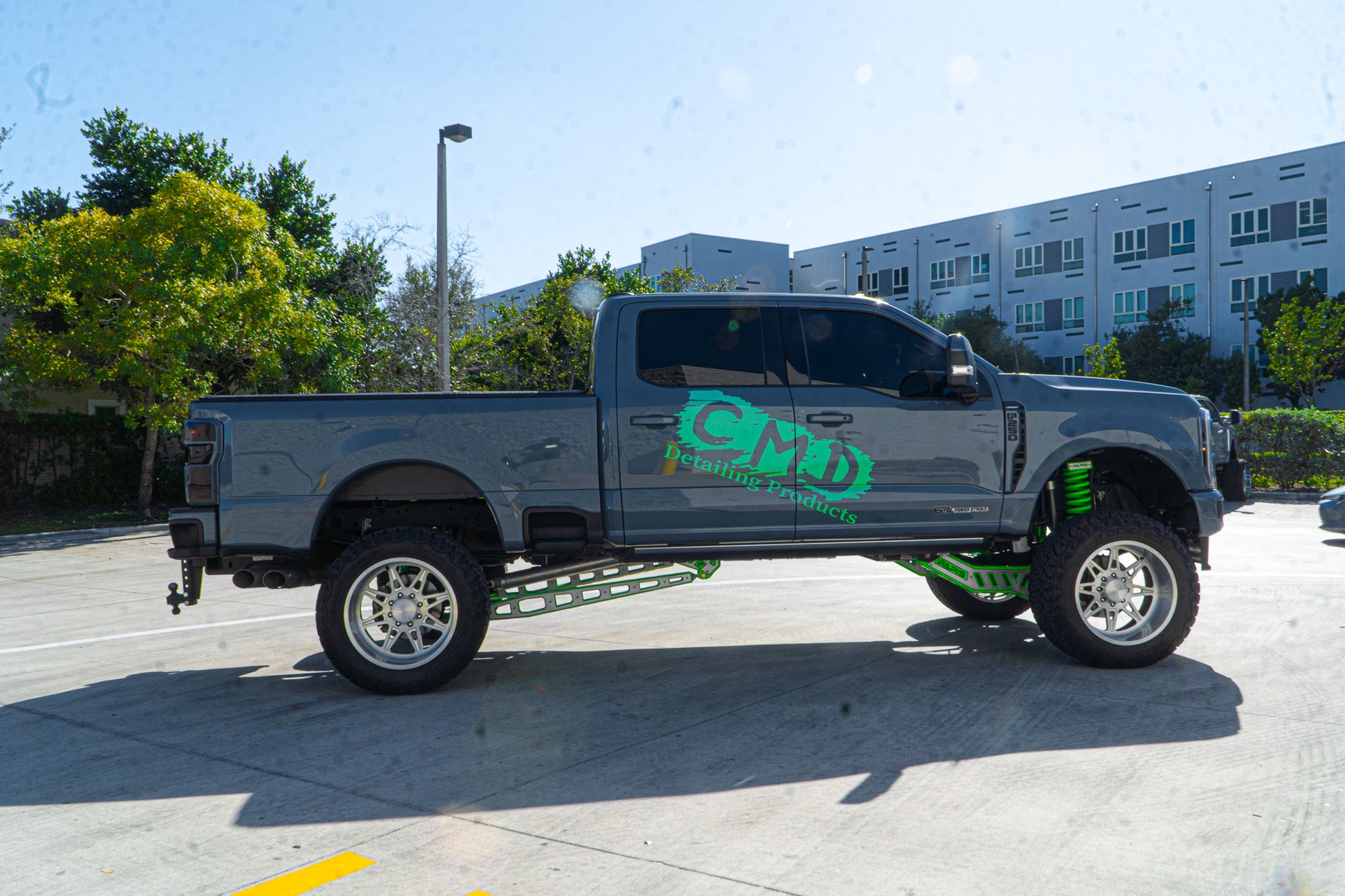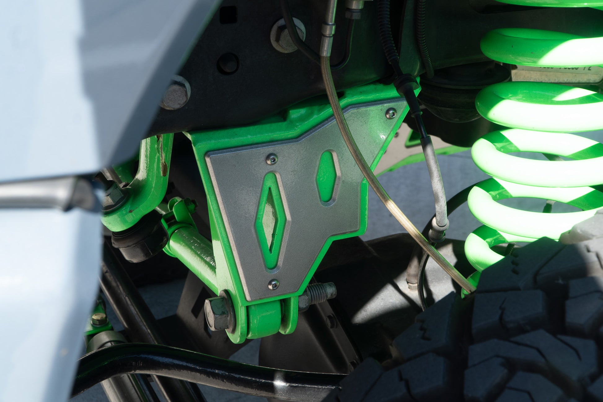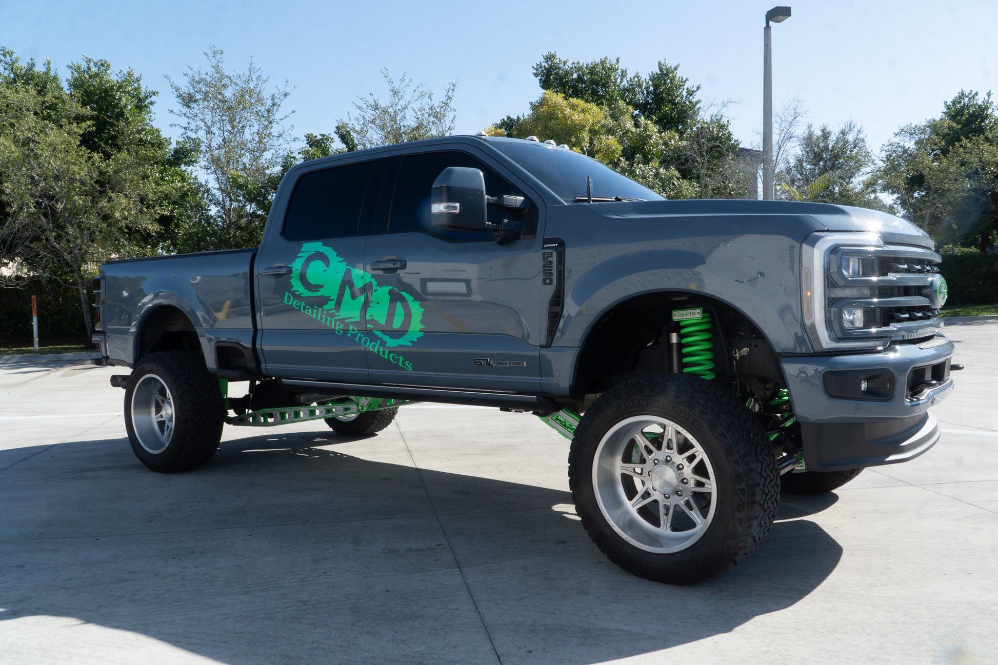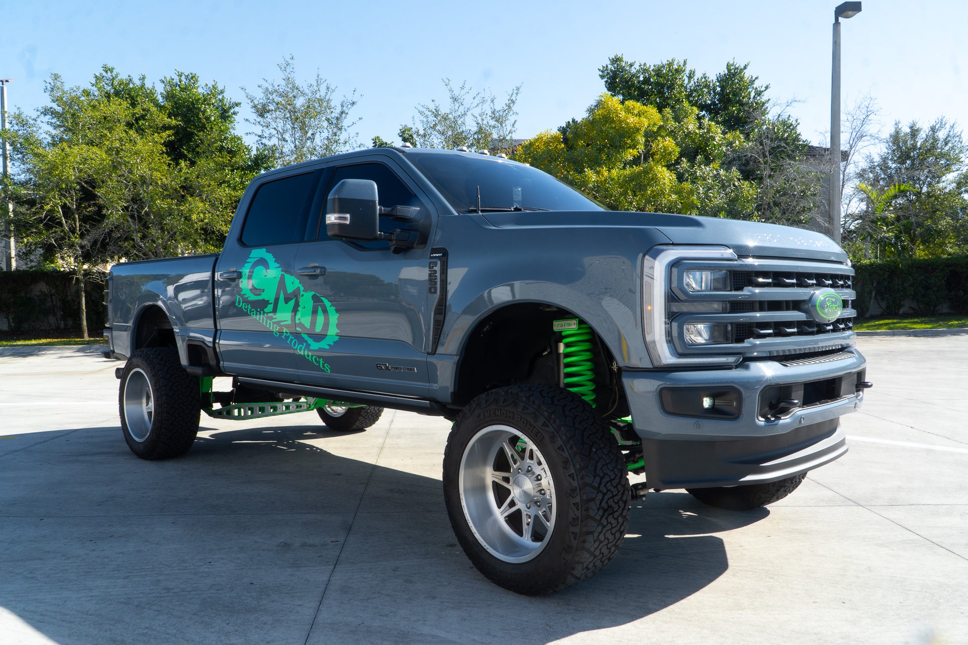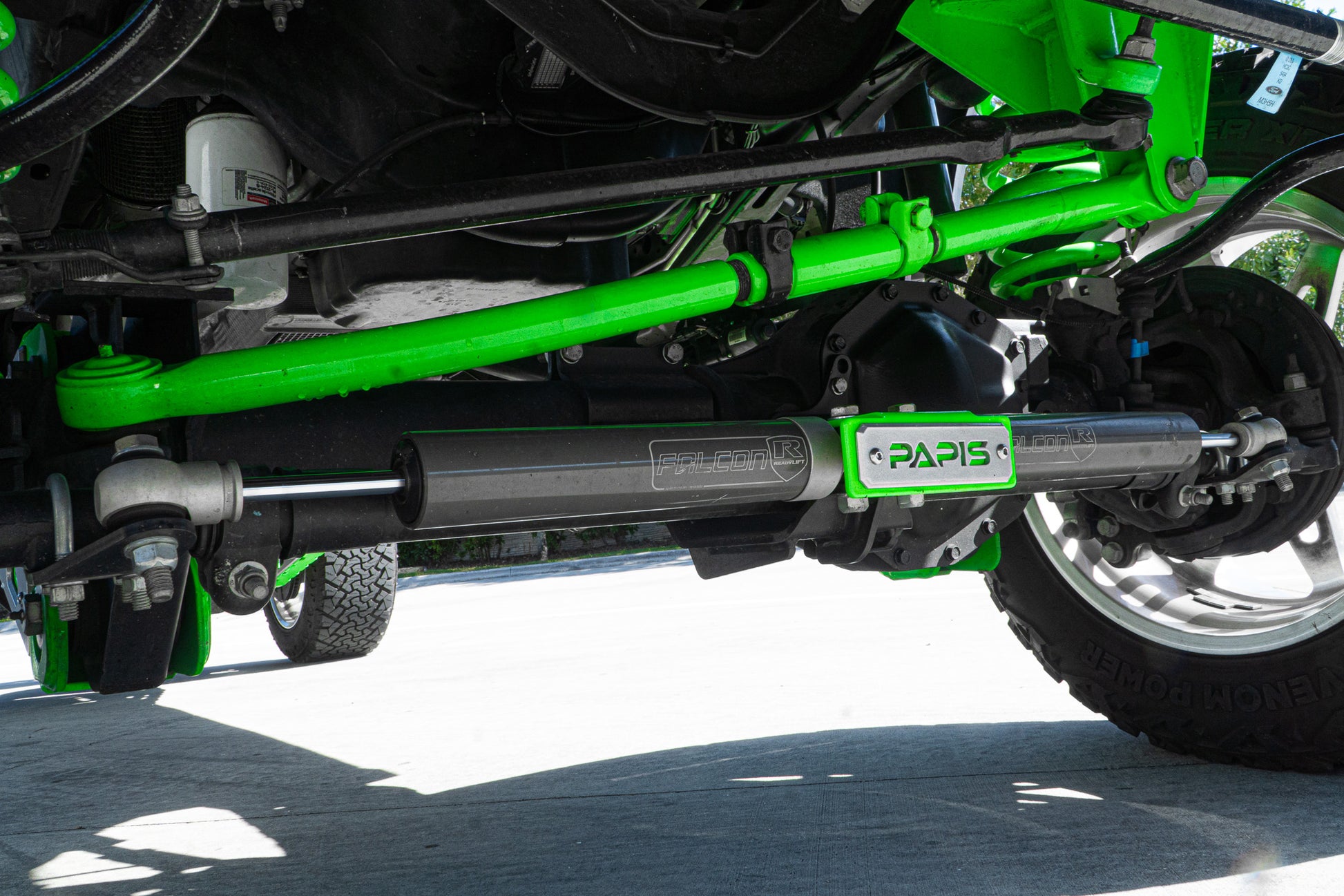 This 2023 F250 Super Duty is on our Papis 4.5-10 inch Papis Radius Arm lift kit with traction bars and a steering stabilizer bracket. This truck is using a set of 8 inch springs with our Papis Coil Plate top