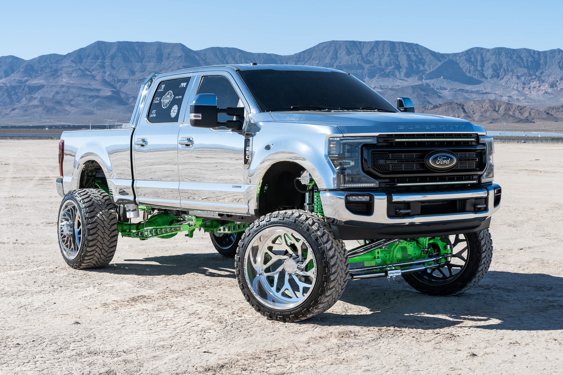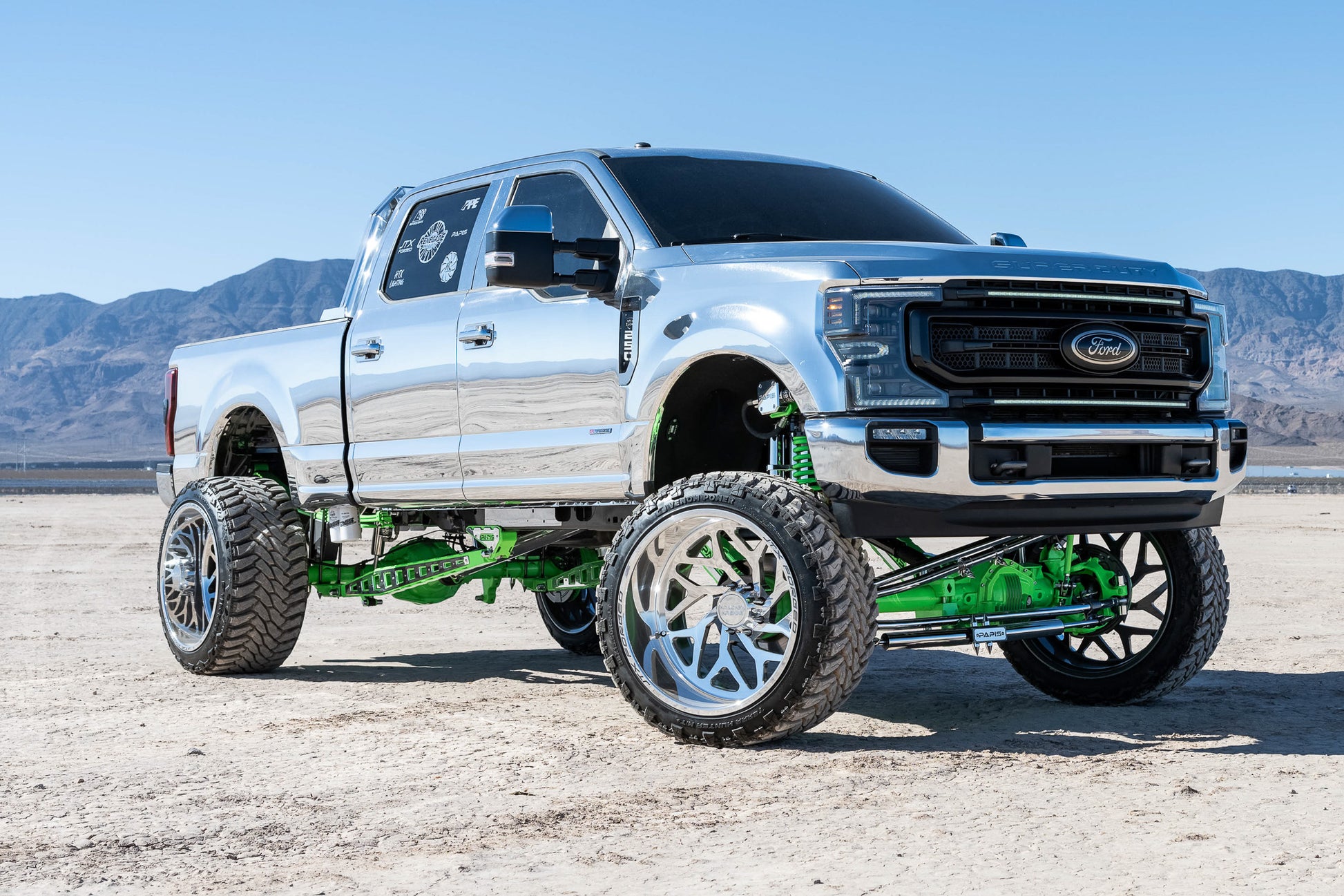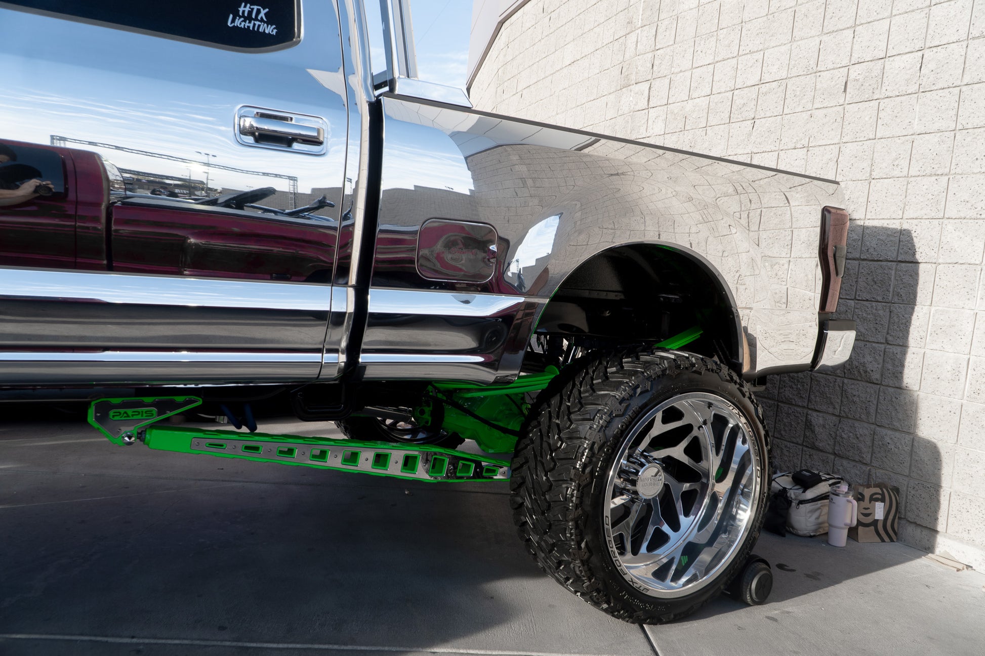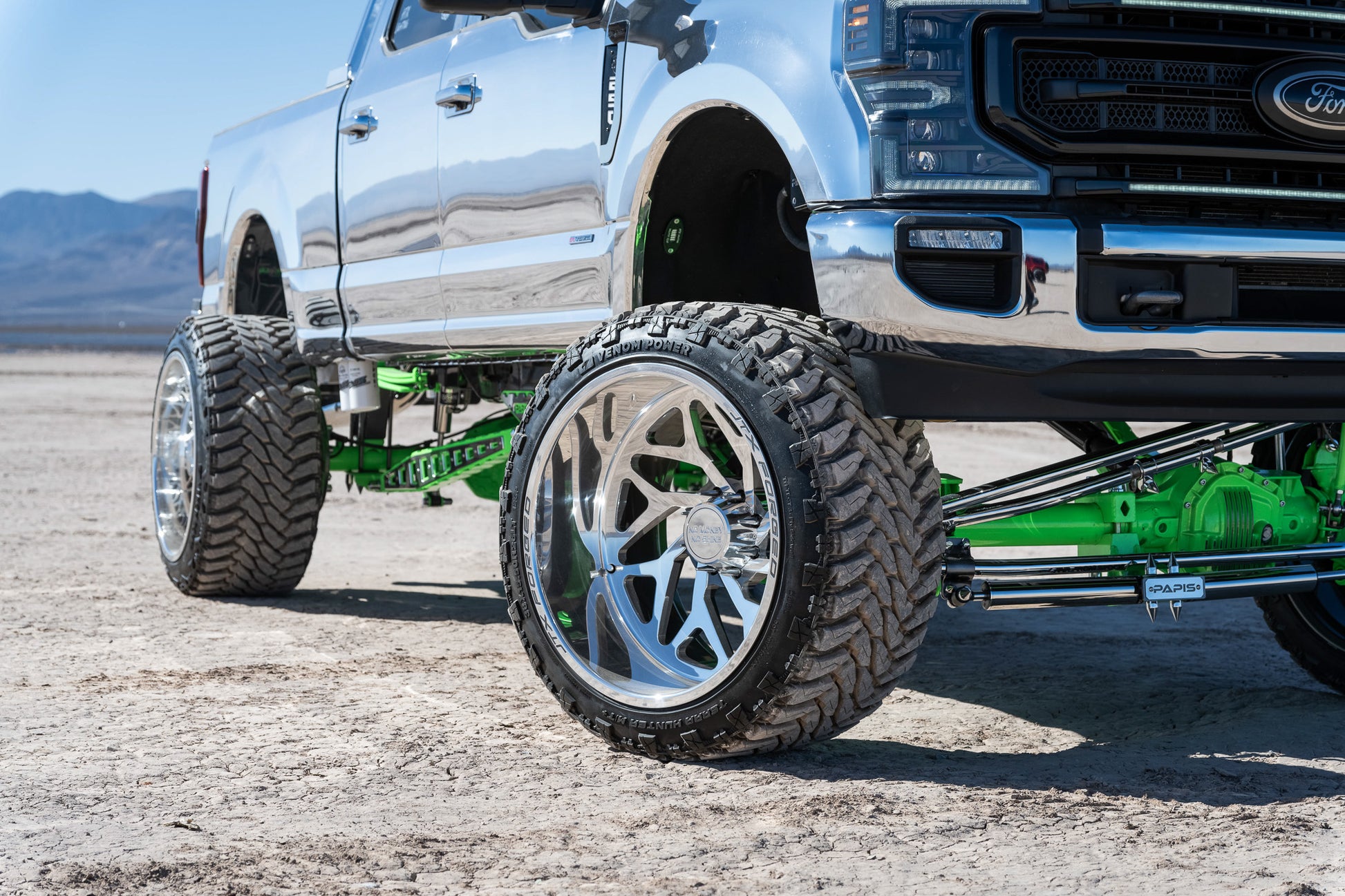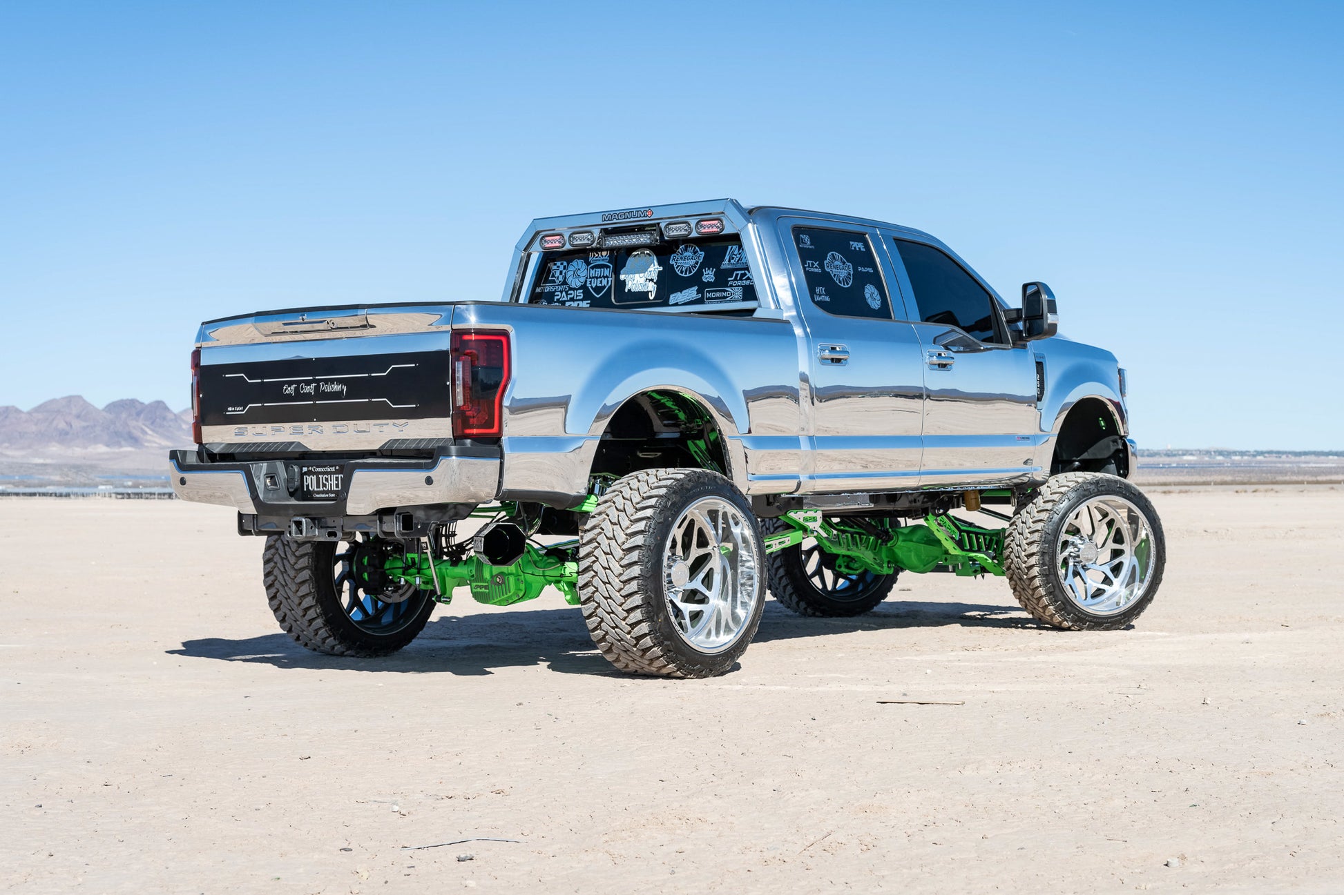 This 2021 F250 Super Duty is on our Papis 4.5-10 inch Papis Radius Arm lift kit with traction bars and a steering stabilizer bracket. This truck is using our Papis Super Duty Coil Over Conversion Bracekts with Coilovers and 8 inch block to retain a perfect 8 inch stance