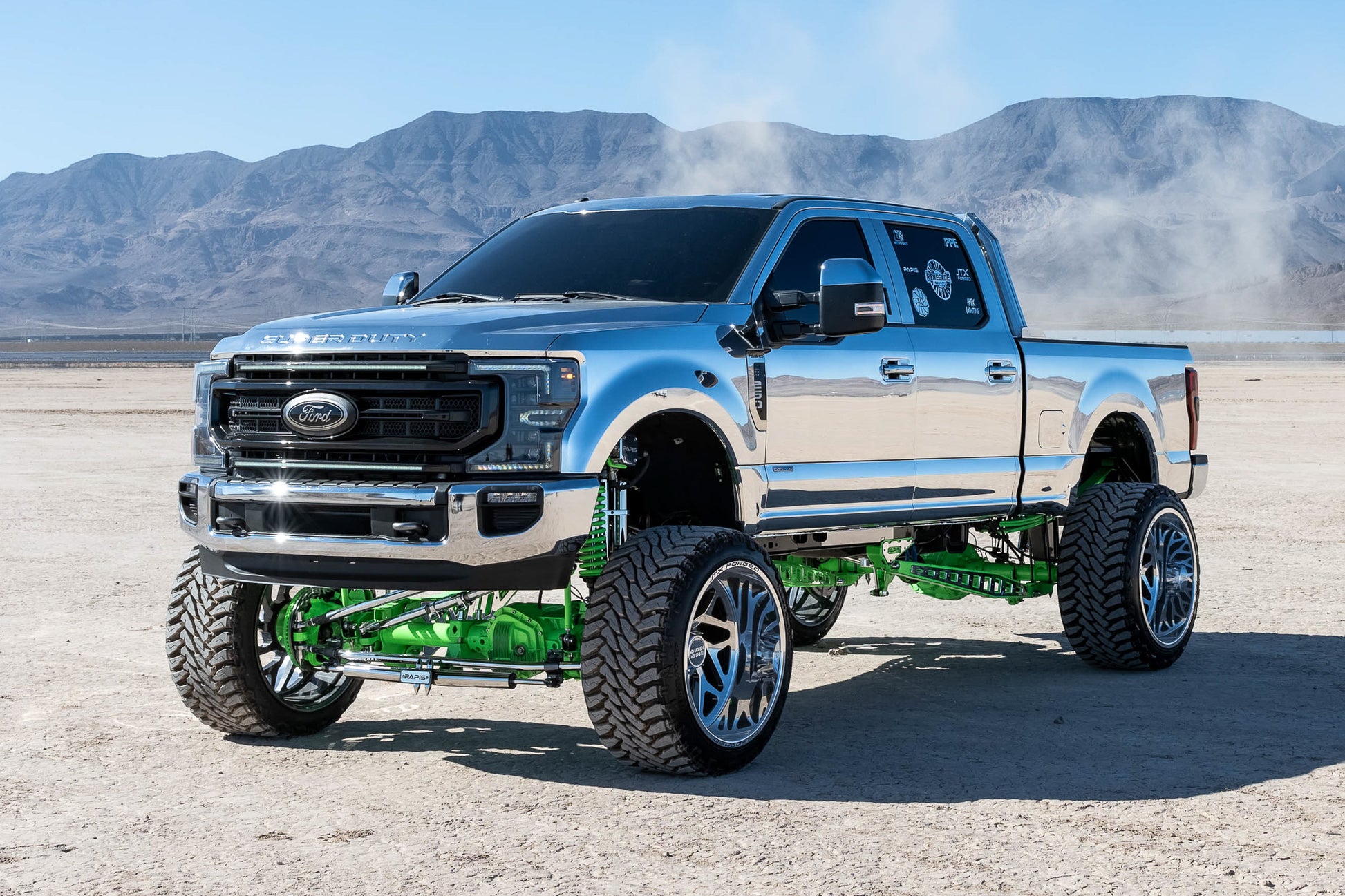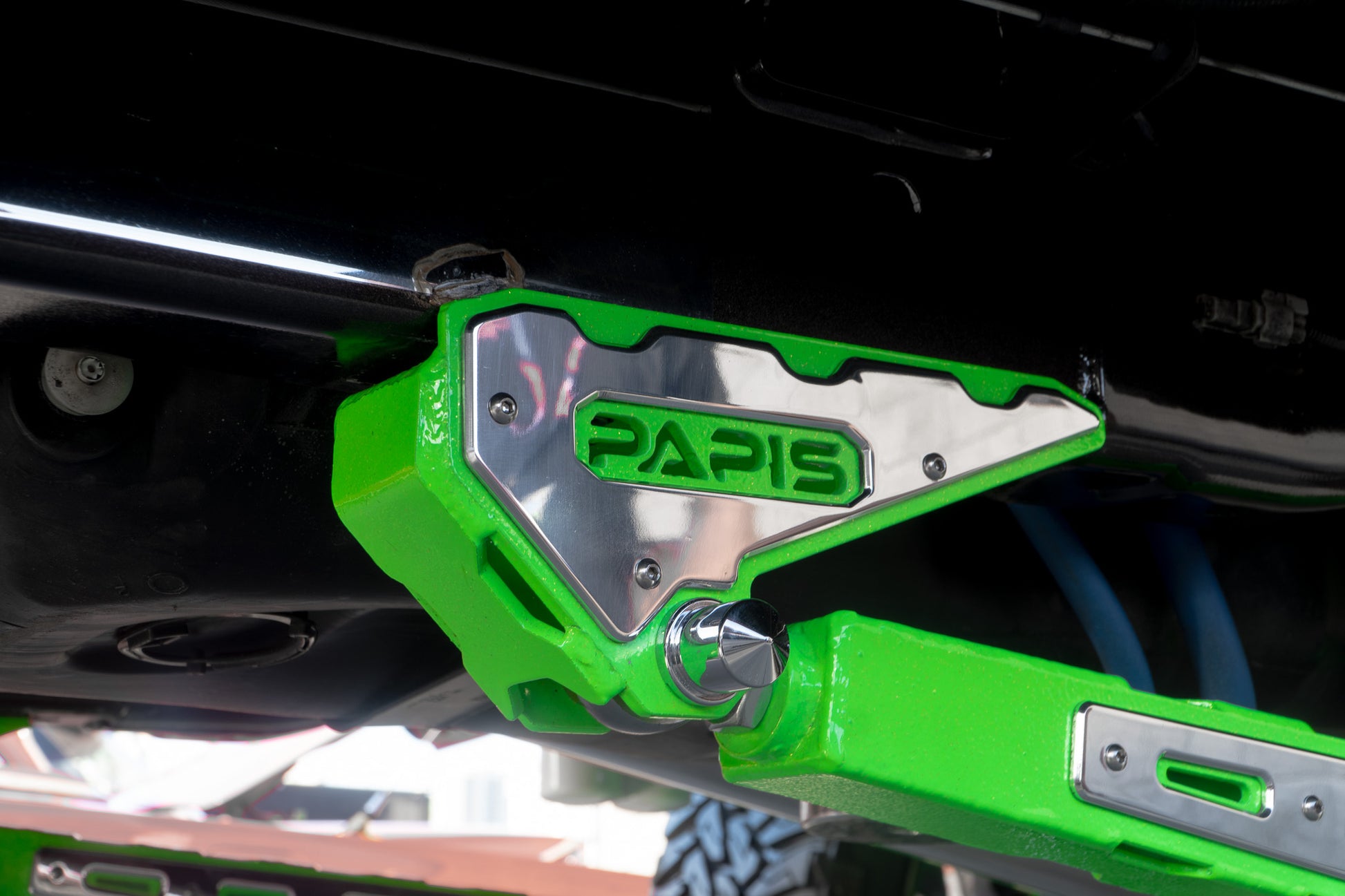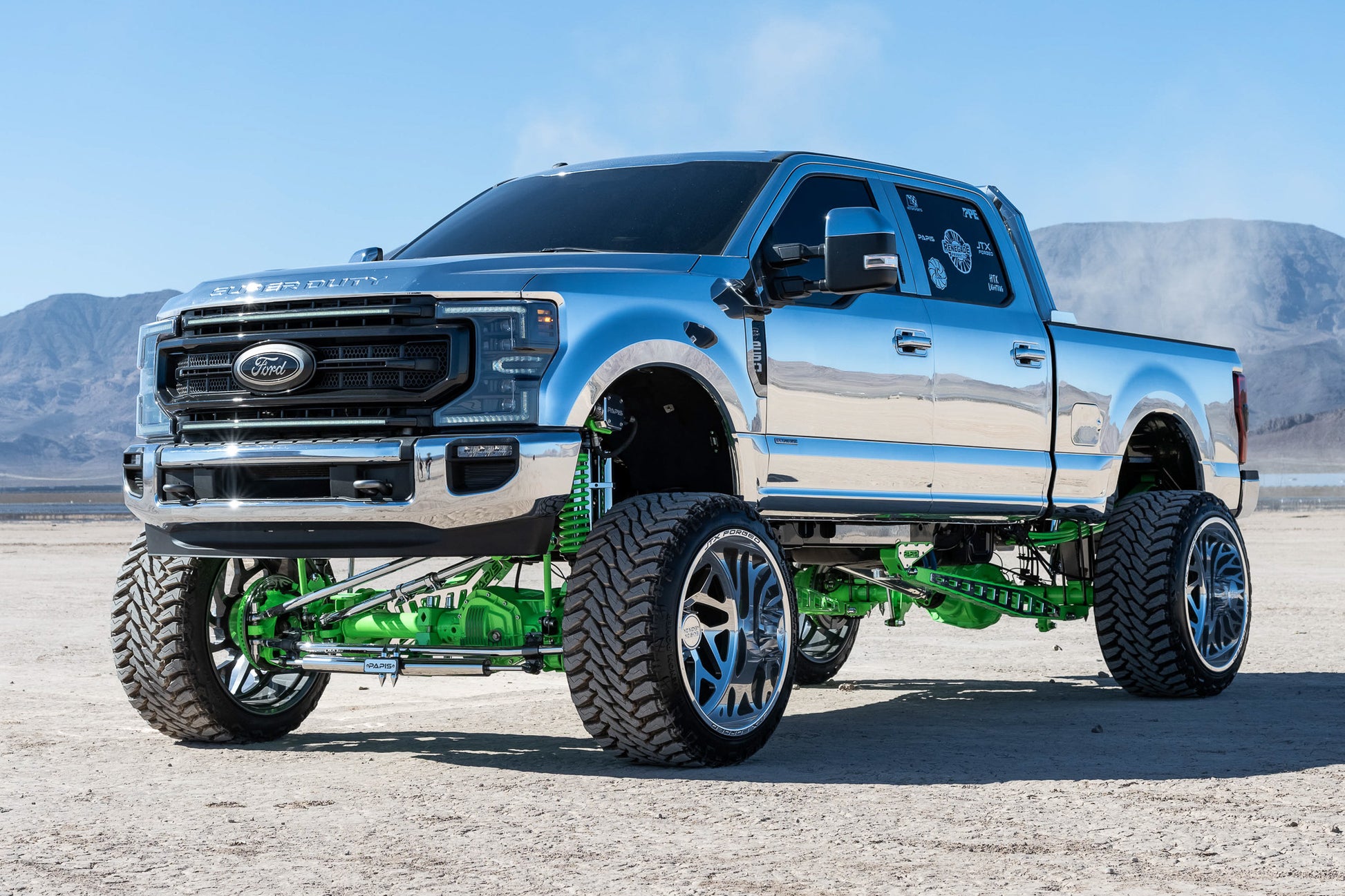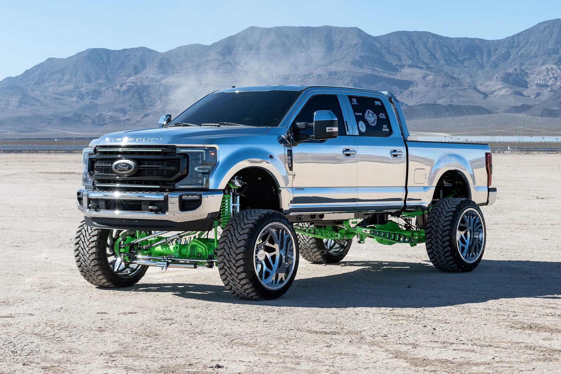 This 2021 F250 Super Duty is on our Papis 4.5-10 inch Papis Radius Arm lift kit with traction bars and a steering stabilizer bracket. This truck is using our Papis Super Duty Coil Over Conversion Bracekts with Coilovers and 8 inch block to retain a perfect 8 inch stance