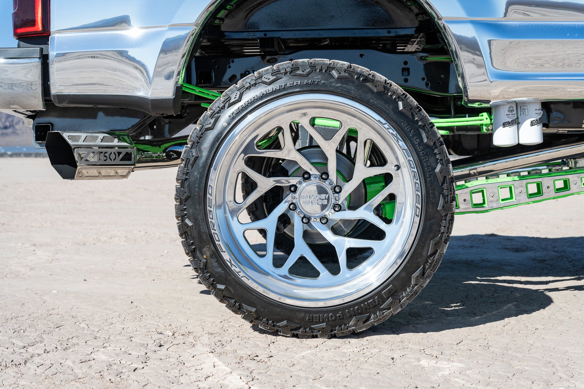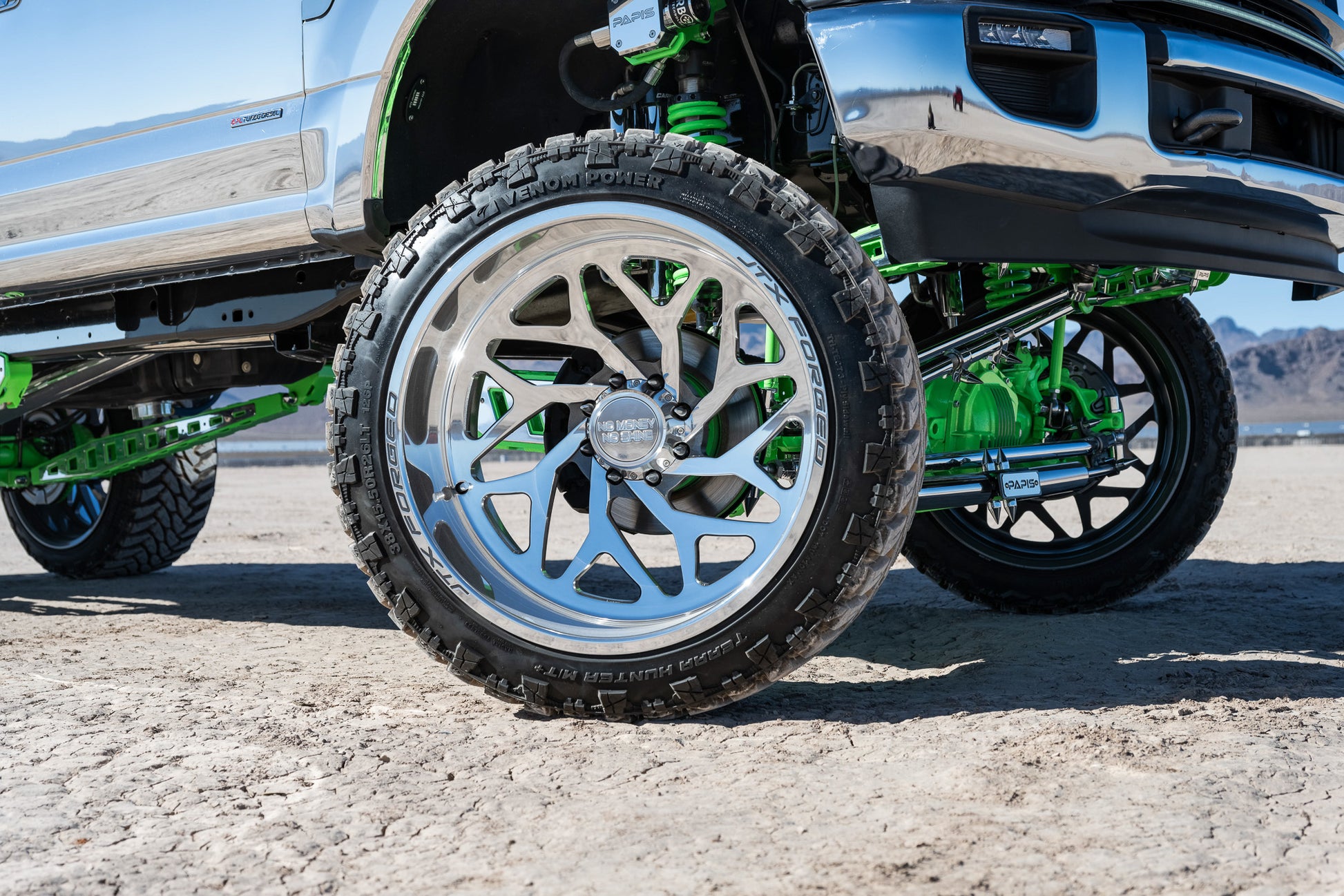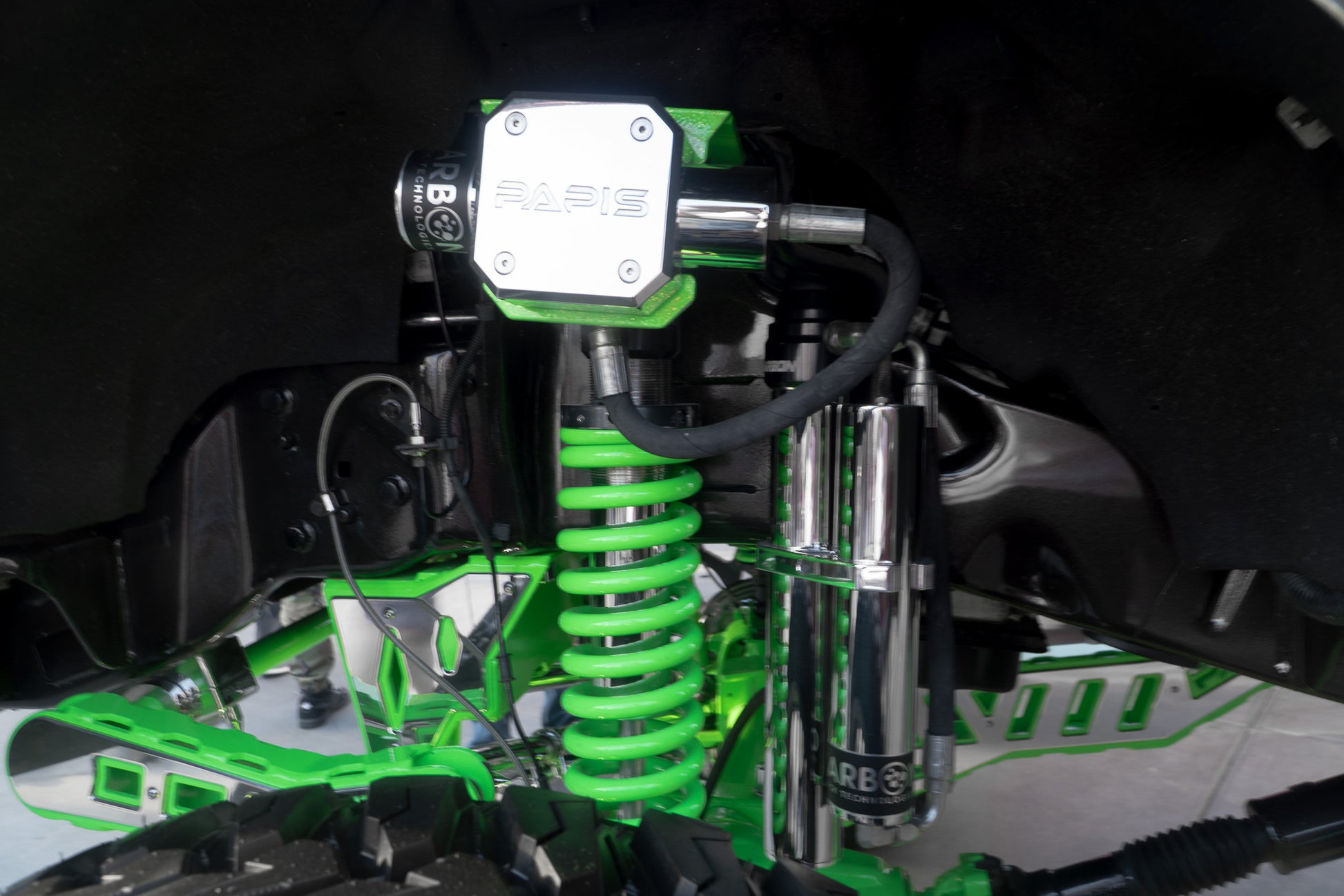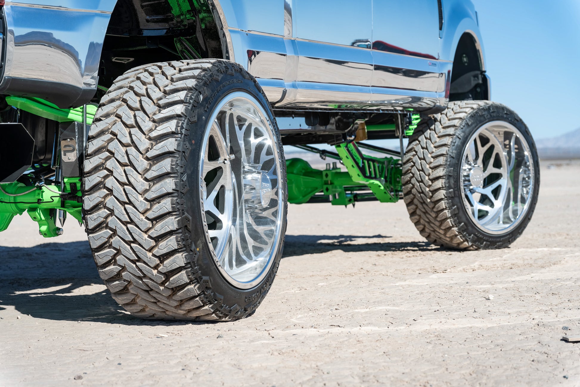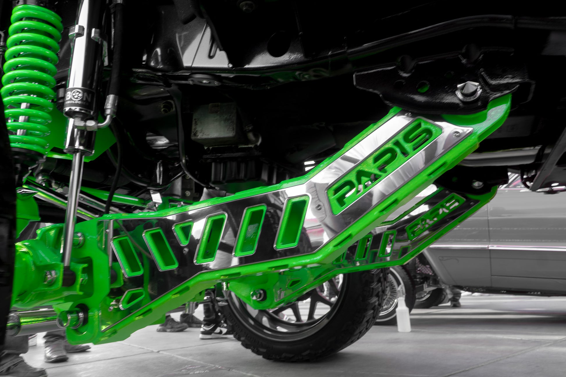 This 2021 F250 Super Duty is on our Papis 4.5-10 inch Papis Radius Arm lift kit with traction bars and a steering stabilizer bracket. This truck is using our Papis Super Duty Coil Over Conversion Bracekts with Coilovers and 8 inch block to retain a perfect 8 inch stance