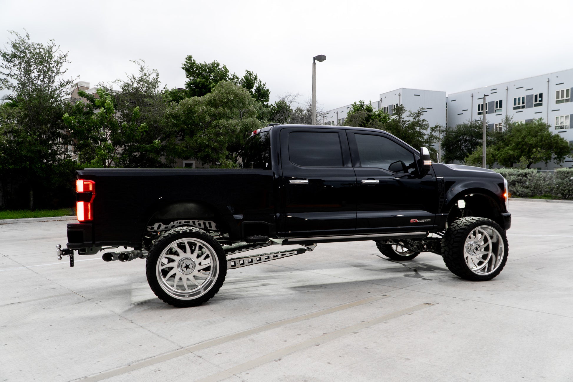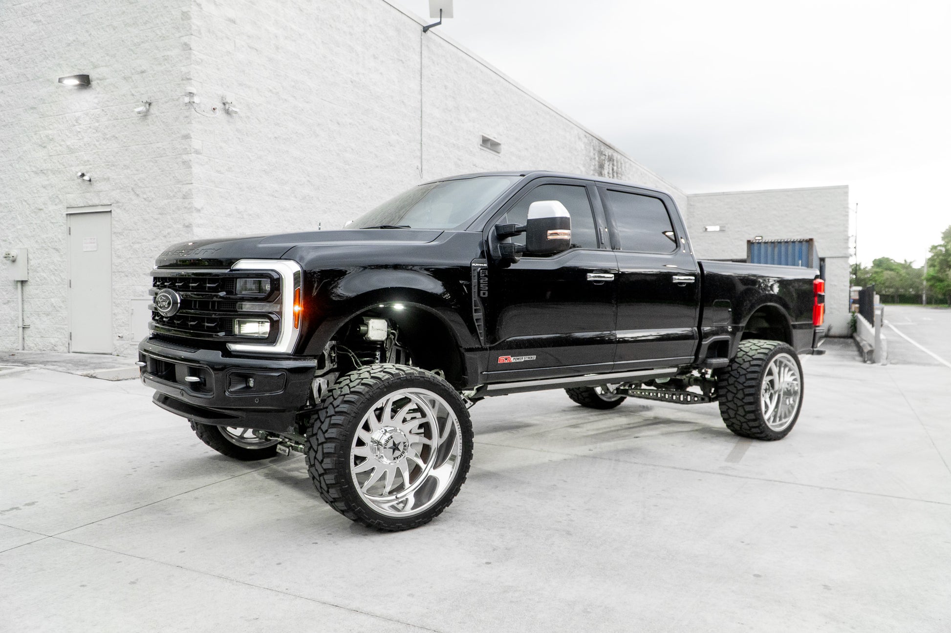 This lifted 2024 Limited F250 Super Duty is on a Papis 4.5-10 inch lift kit using our Fabricated Radius Arms and Traction Bars as well as a ton of other Papis Products !